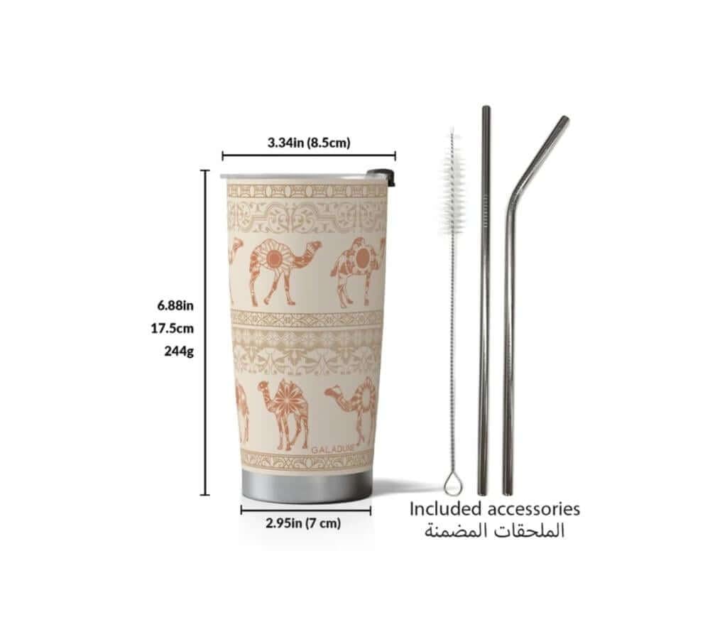 كوب الترمس جالادون مصنوع من الفولاذ المقاوم للصدأ عالي الجودة، ويمكنه حمل المشروبات الباردة والساخنة، وقفل درجة الحرارة، والحفاظ على المشروب في الكوب بأفضل مذاق لفترة طويلة. يمكنك فتح الغطاء للشرب أو إدخال القشة للاستخدام. يمكن لغطاء الكوب متعدد الوظائف تلبية احتياجاتك اليومية. تُظهر الطباعة الرائعة على الطراز العربي الخصائص الثقافية الوطنية، كما يوفر السطح المصنفر شعوراً مريحاً، مما يسمح لك بالاستمتاع بكل لحظة من استخدامه.