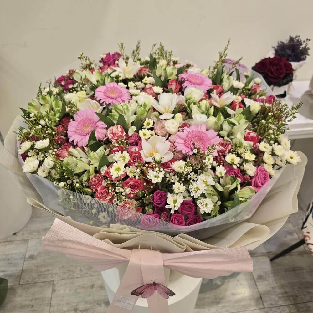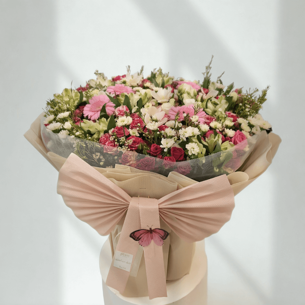 احصل على باقة ورود متنوعة كبيرة بتغليف بيج من Pion الآن وأضف لمسة من الألوان والبهجة لمناسبات أحبائك.